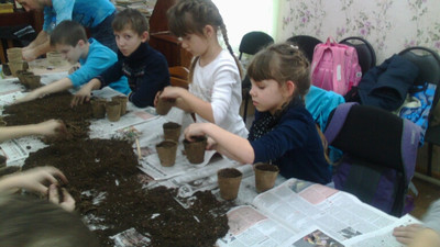 За окном белым-бело, снег вокруг. Всю округу замело за день вдруг… Но в здании Дома детского творчества тепло и уютно, раздаются звонкие голоса ребят, перебиваемые строгими нотки педагогов. После группы продленного дня дети спешат на занятия в различные объединения дополнительного образования. Ребята учатся флористике, английскому языку, выжиганию, танцам и многим другим видам творчества. Очень увлекательно проходят занятия в объединении «Резьба по дереву»: все парты устланы целлофаном, землей и торфяными стаканчиками, а ребята ловко перебирают ручками, мульчируя землю и занимаясь посадкой цветов. Оказывается, в объединении закончились пилочки для ручных лобзиков, а в строительные магазины города поставка товаров будет только в конце недели, поэтому ребяткам нечем выпиливать поделки к выставке технического творчества… Но педагог дополнительного образования Александр Леонидович Хисяметдинов нашел выход и из такой плачевной ситуации: они с ребятами решили вырастить рассаду цветов для посадки в клумбу Дома детского творчества и поучаствовать в ежегодной социальной акции «Цветущий Хвалынск». Детки от перемены деятельности просто в восторге. Им очень понравилось возиться с землей. А некоторым ребятам даже не верится, что из семян, размером с игольное ушко, вырастут такие замечательные растения, как на картинках. Ну а мы будем наблюдать за происходящим и рассказывать про успехи ребят, участников социальной акции «Цветущий Хвалынск». И. Хисяметдинова | |